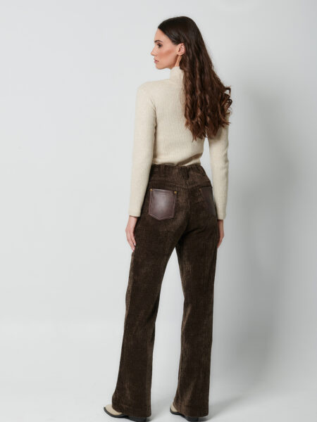 Πουλόβερ rib lurex πλεκτό 715 532 Παντελόνι καμπάνα κοτλέ velvet 245 531