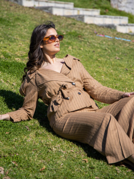 Καπαρντίνα crop λινό 946 522 και παντελόνα 230 523
