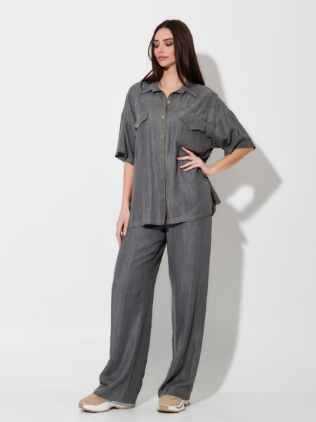 Washed Denim Oversized Πουκάμισο & Παντελόνα