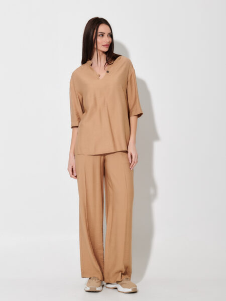 Washed Satin Μπλούζα & Satin Gabardine Ζιπ Παντελόνα
