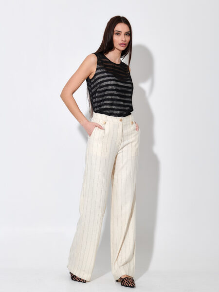 Zigzag Lace Μπλούζα & Striped Linen Παντελόνα