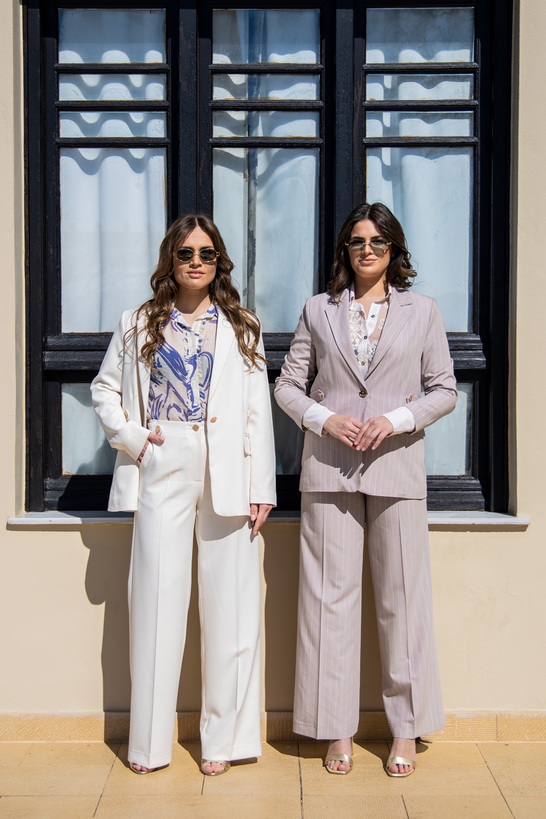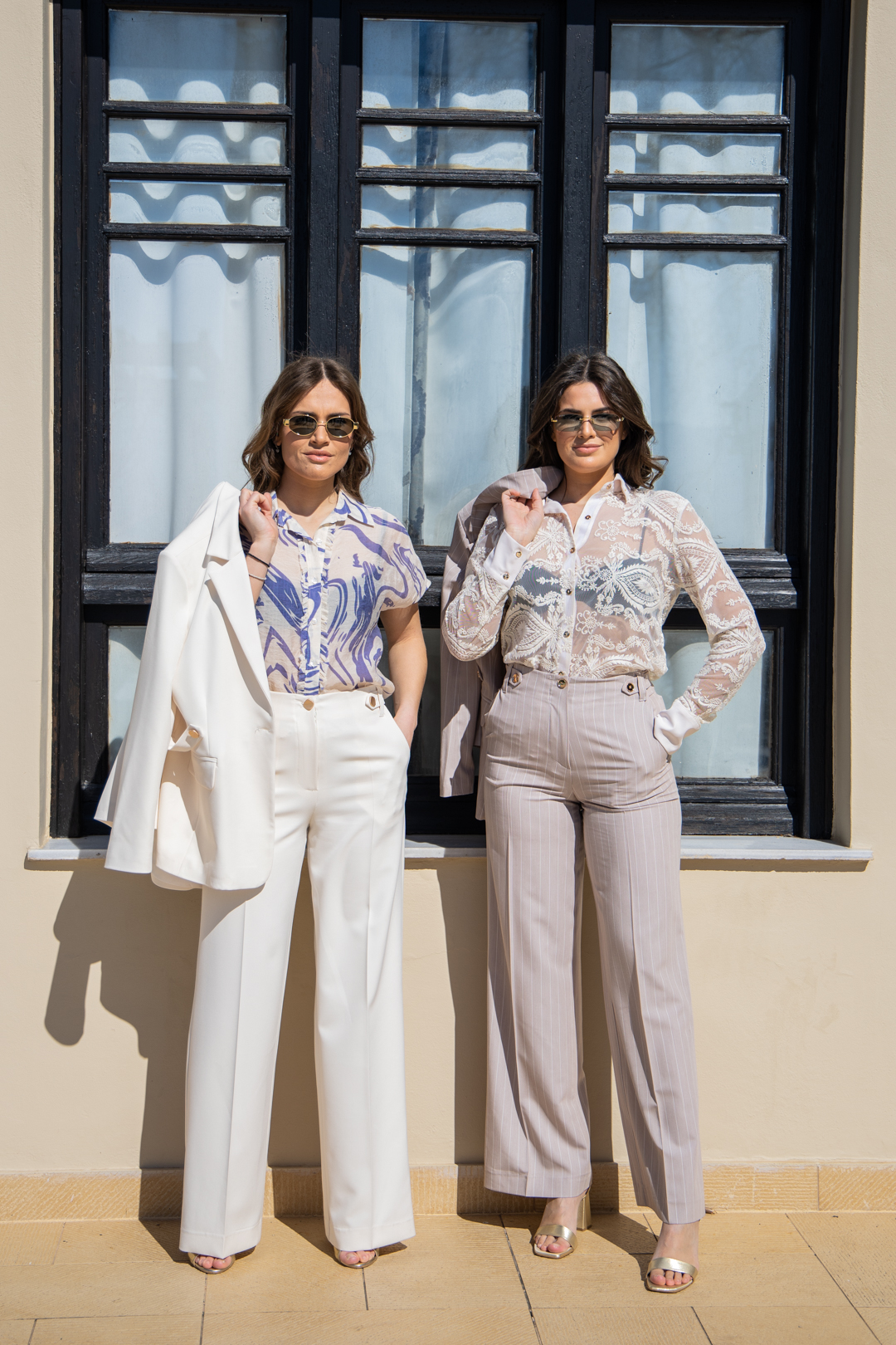 Σακάκι κρεπ push-up 472 521 με παντελόνα 282 521 και πουκάμισο βουάλ Tencel 525 522 Παντελόνι κρεπ push-up 272 521 Σακάκι T/R ριγέ 472 522 με παντελόνα 282 522 και πουκάμισο tulle κέντημα 576 522 Παντελόνι T/R ριγέ 272 522