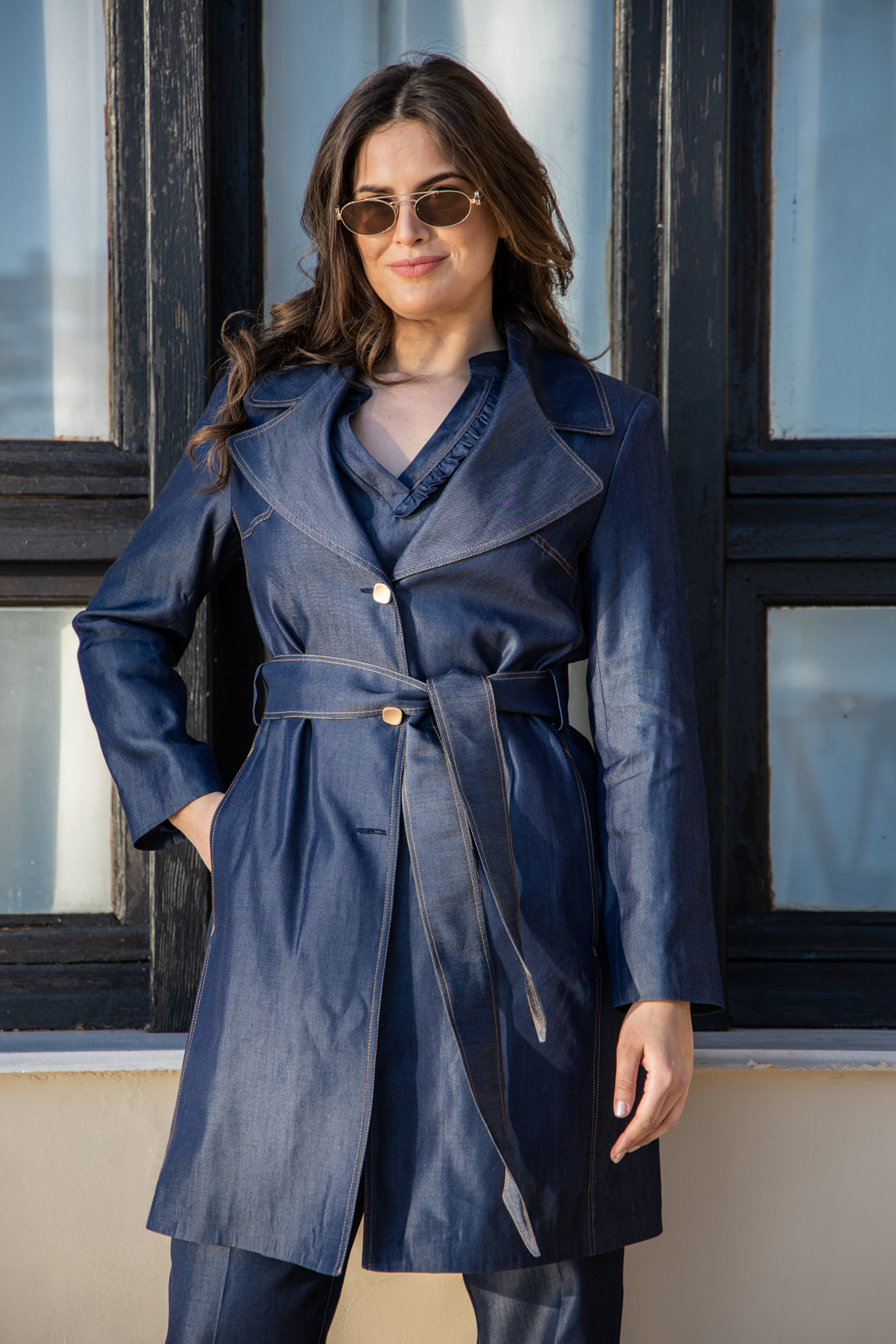 Καπαρντίνα τζην Lyocell 100% βαμβάκι 975 524 με παντελόνι 242 523 και μπλούζα 665 521