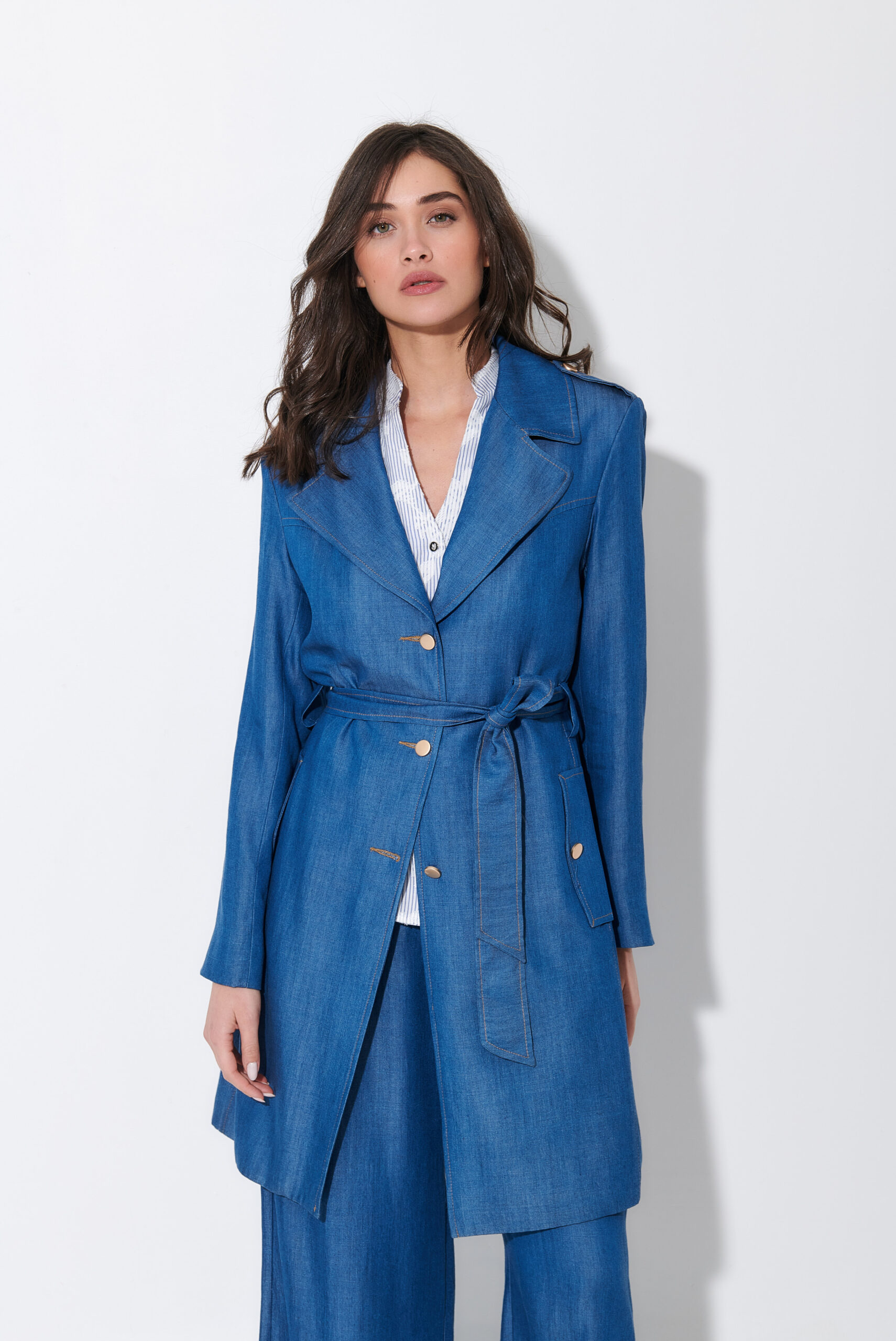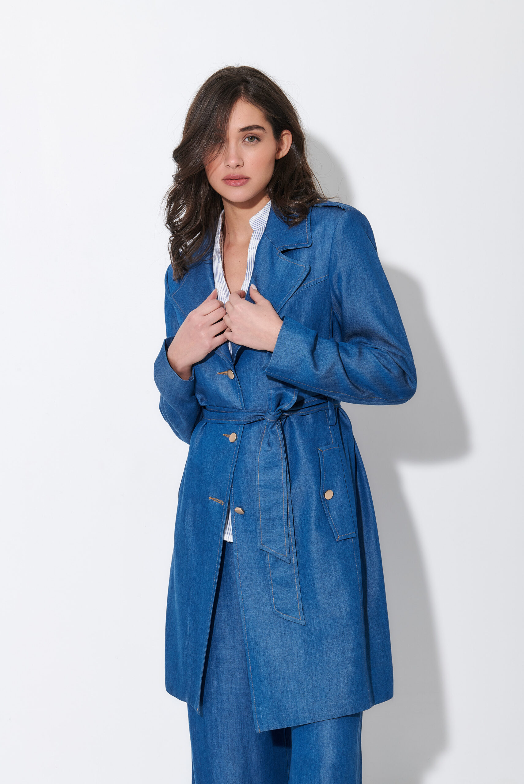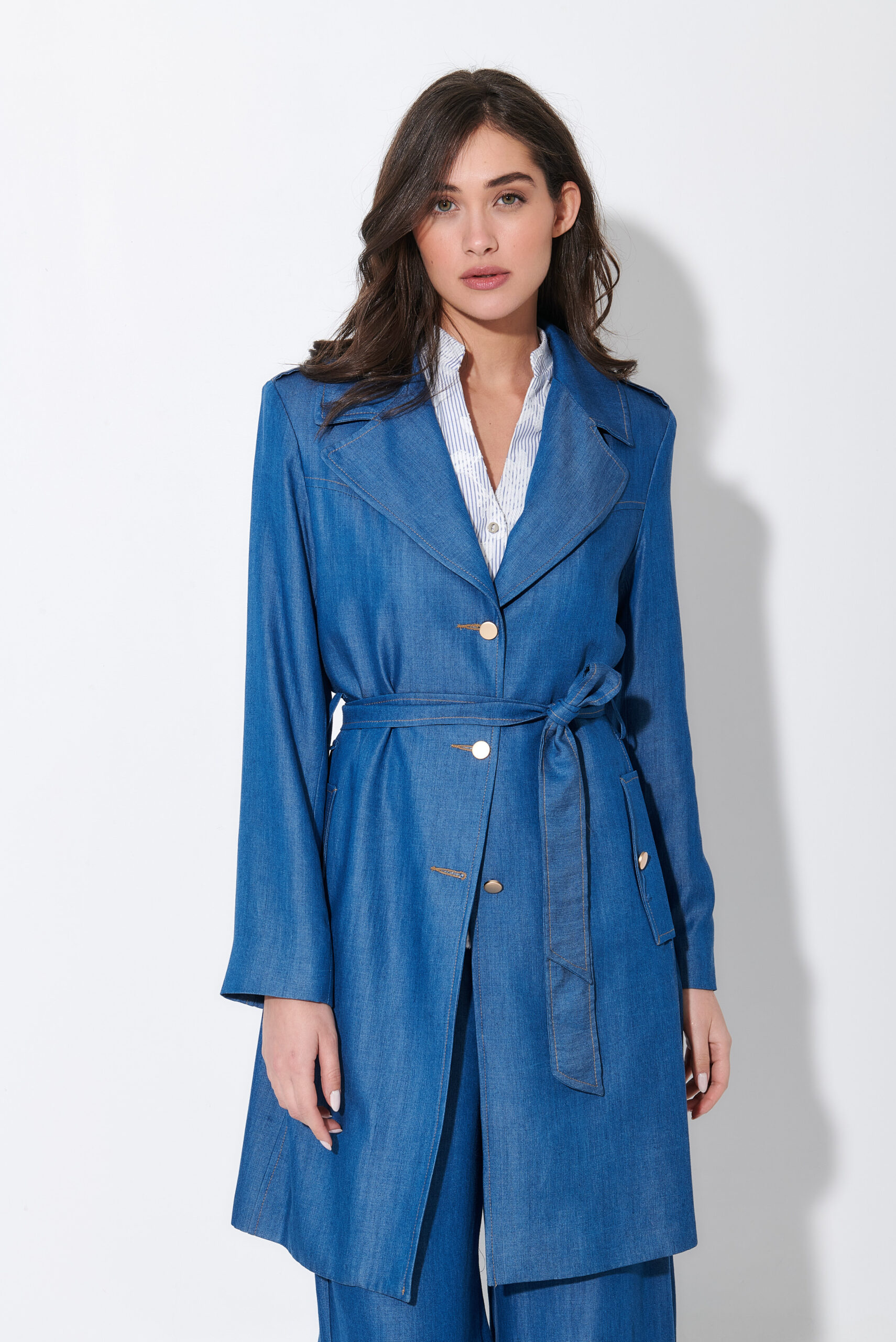 Contrast Topstitched Washed Denim Καπαρντίνα