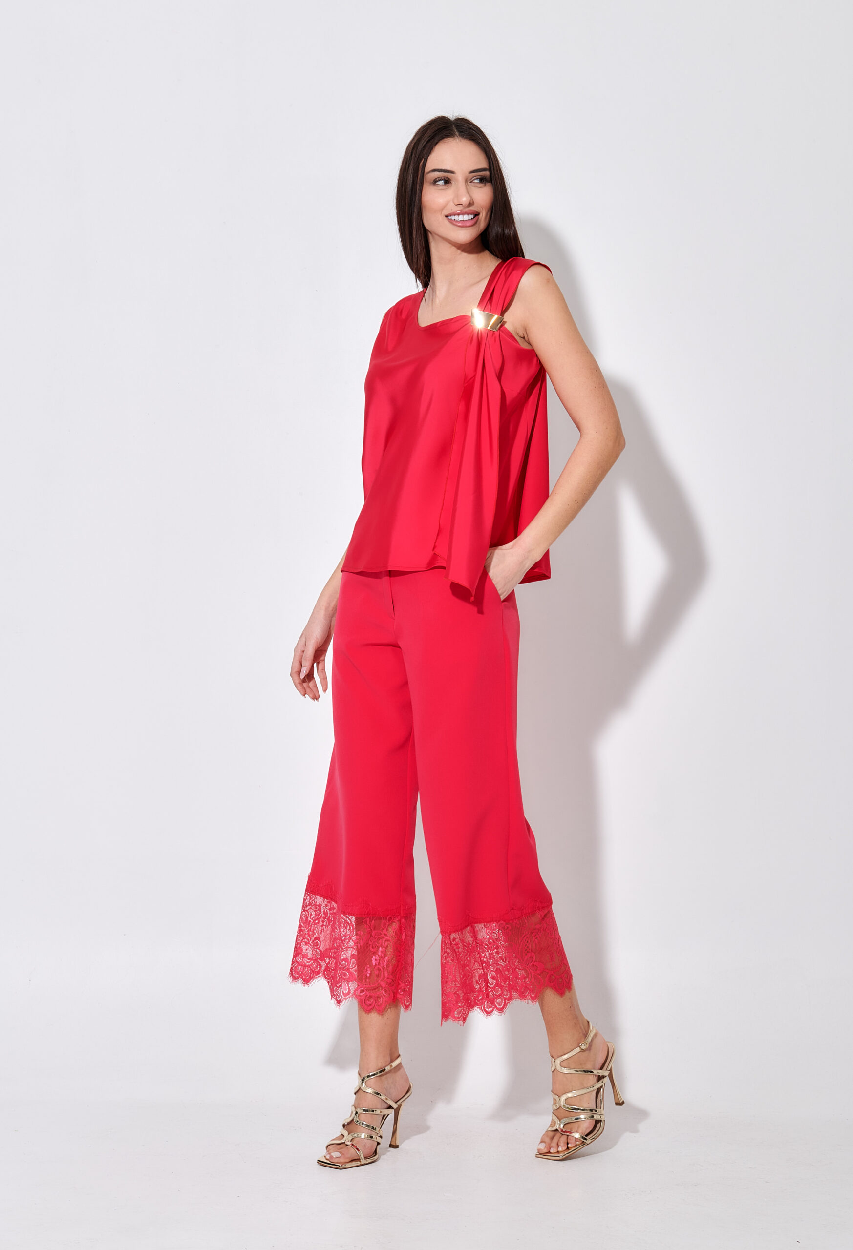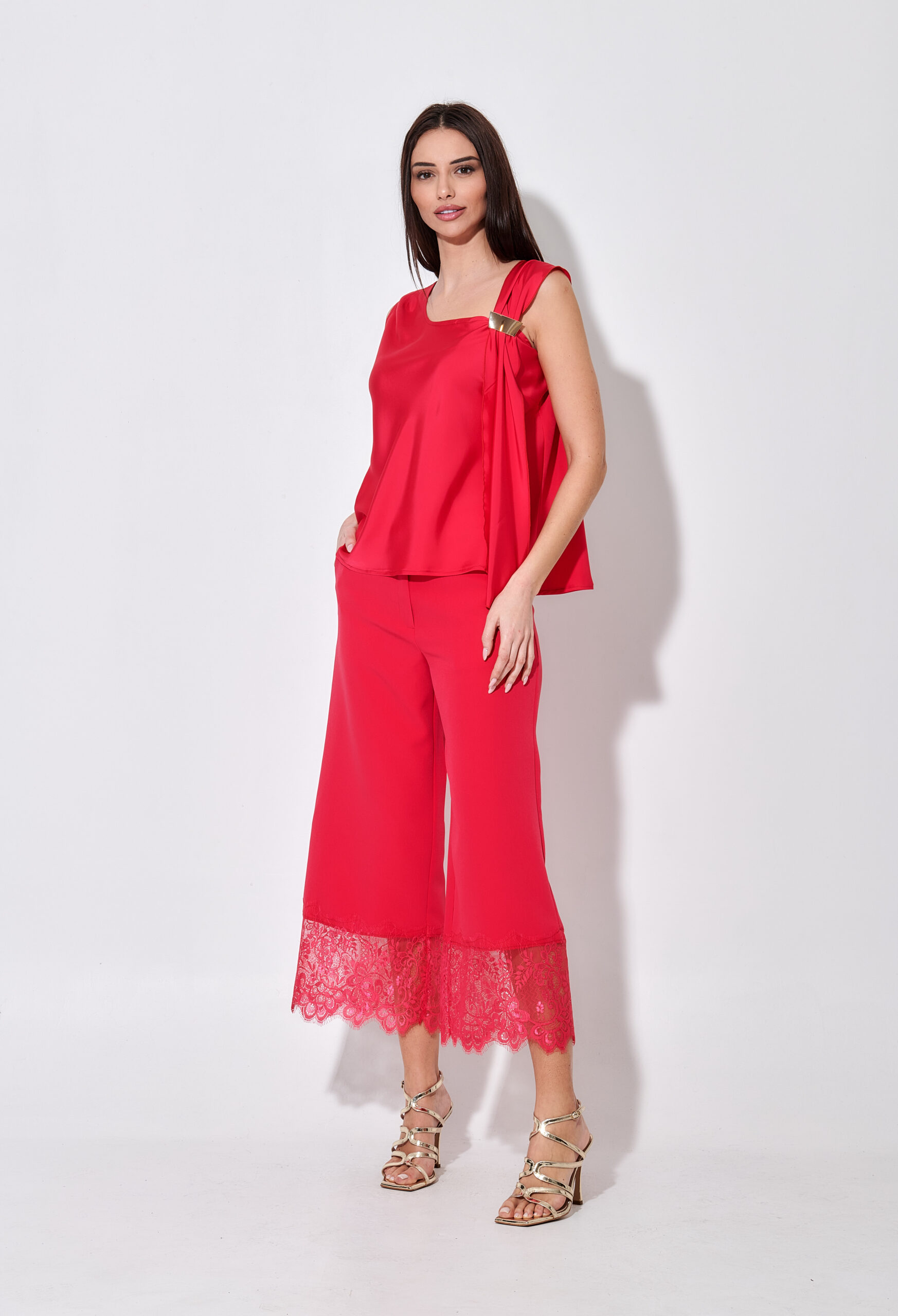 Satin Rasetto Μπλούζα & Crepe Push-Up Ζιπ Παντελόνα
