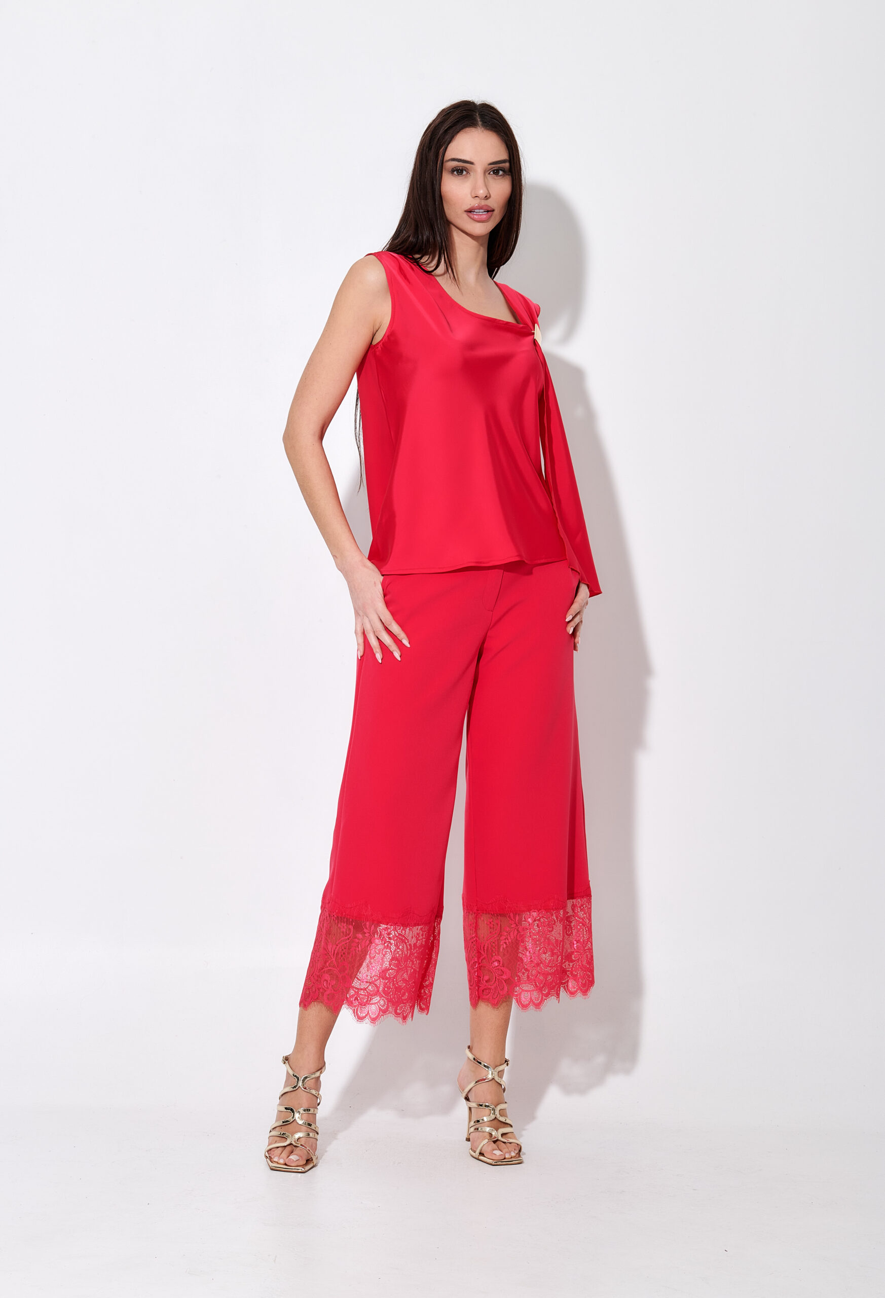 & Crepe Push-Up Wide-Leg Lace Culottes 229621